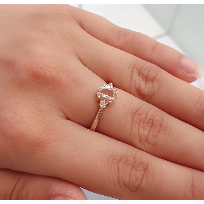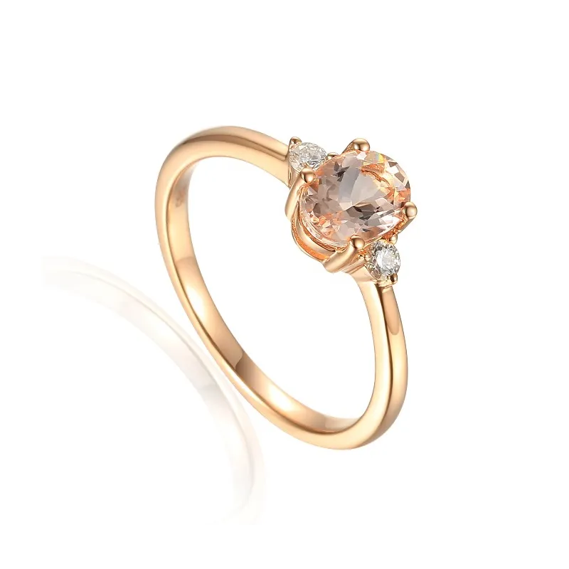 ZŁOTY PIERŚCIONEK Z MORGANITEM I BRYLANTAMI