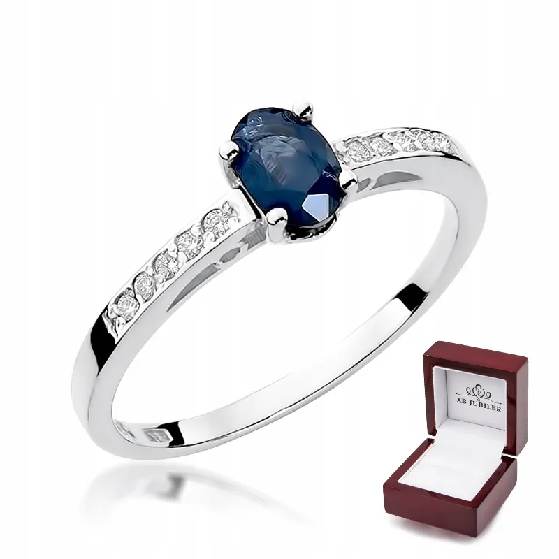 Pierścionek Zaręczynowy Białe Złoto Szafir Diamenty