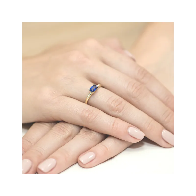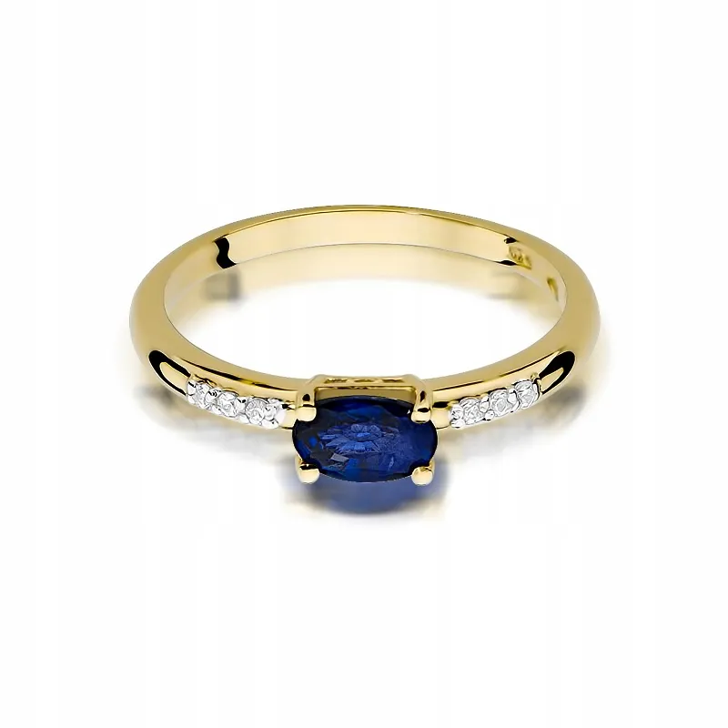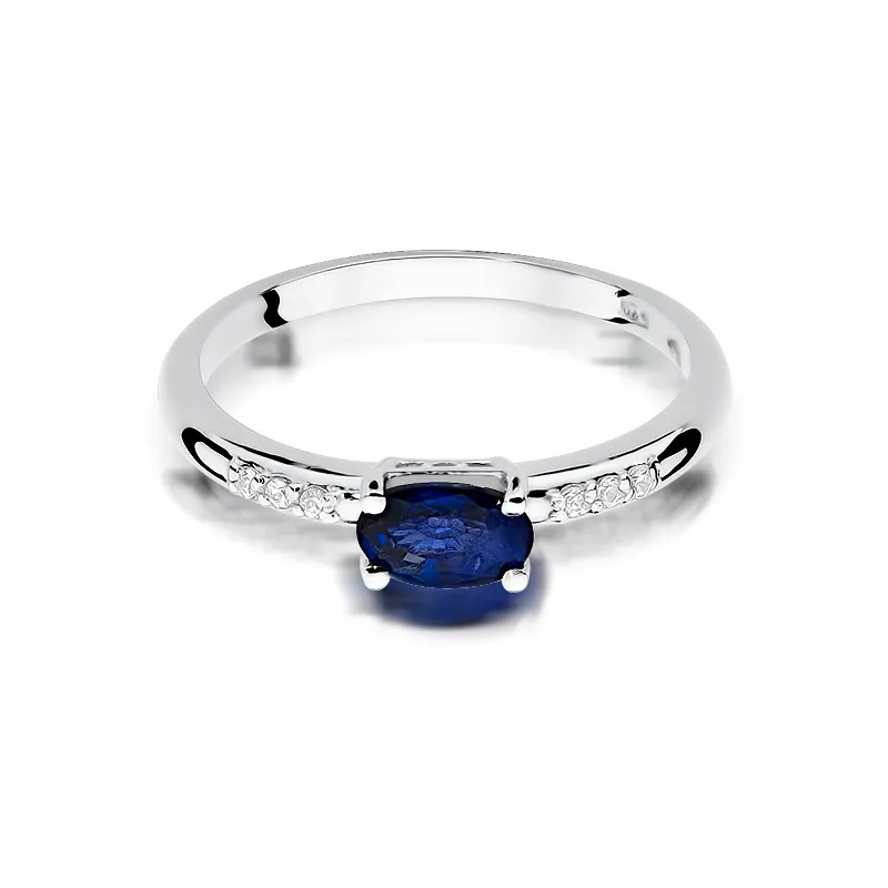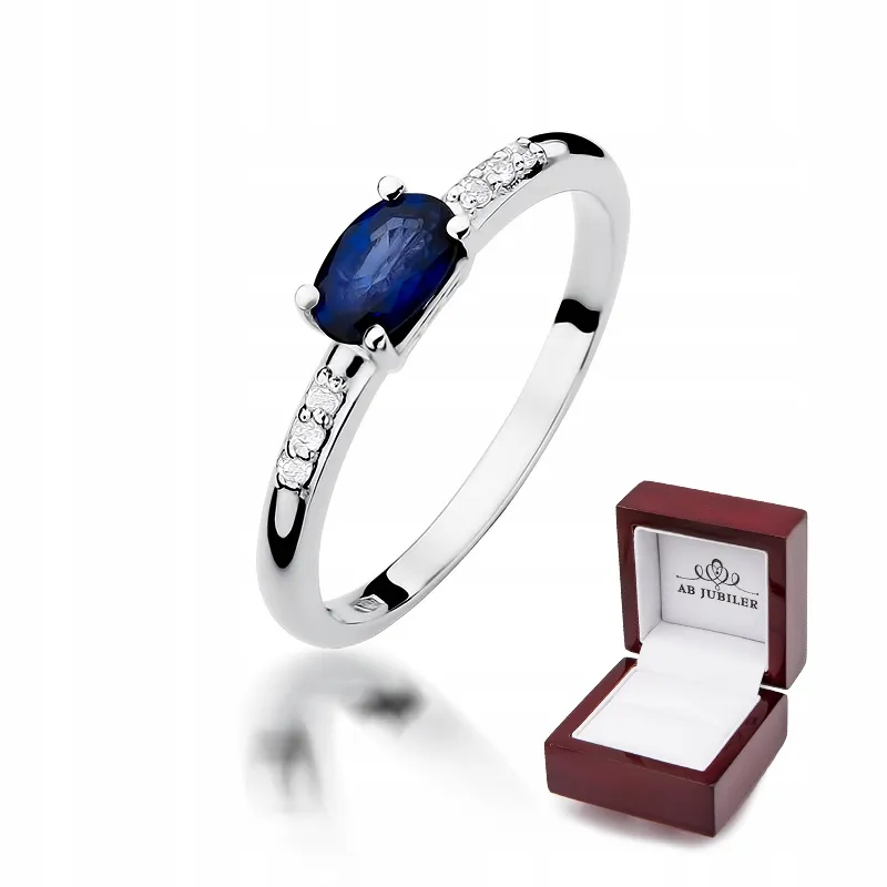 Pierścionek Zaręczynowy Białe Złoto Szafir Diamenty