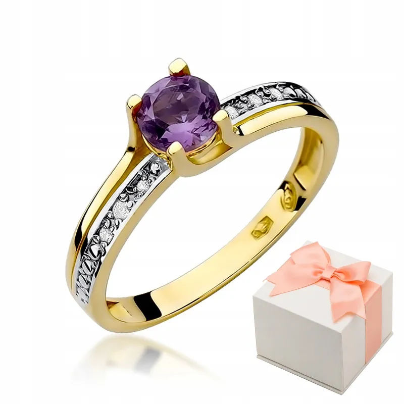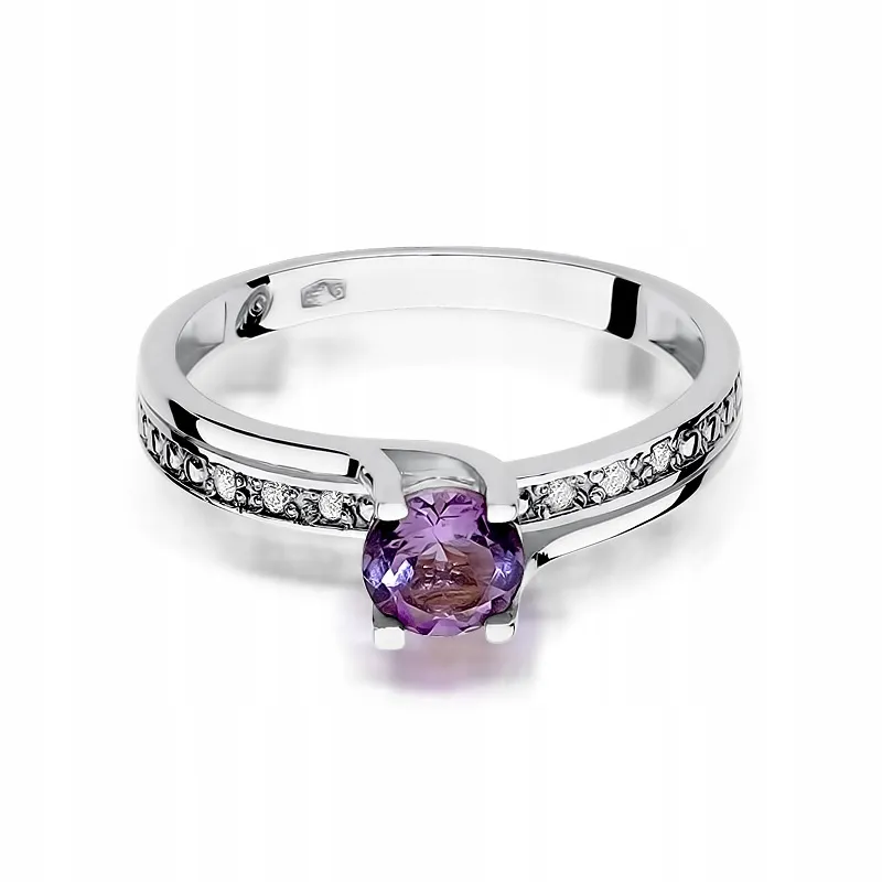 Pierścionek Zaręczynowy Ametyst Brylanty