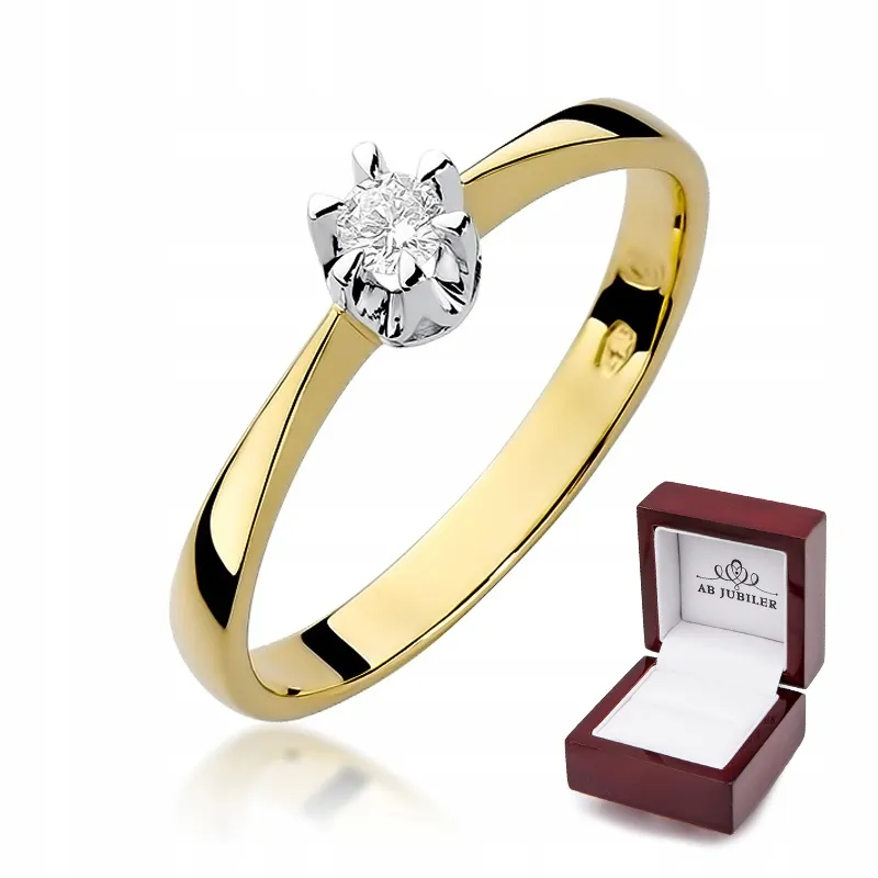 Złoty Pierścionek Zaręczynowy Brylant 0,10ct