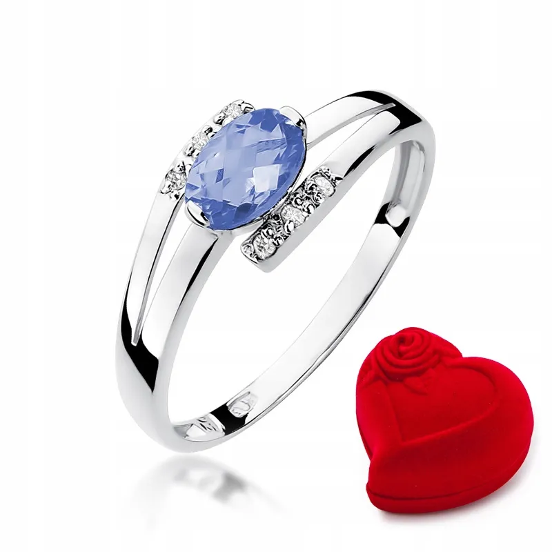 Pierścionek Białe Złoto Tanzanit Brylanty