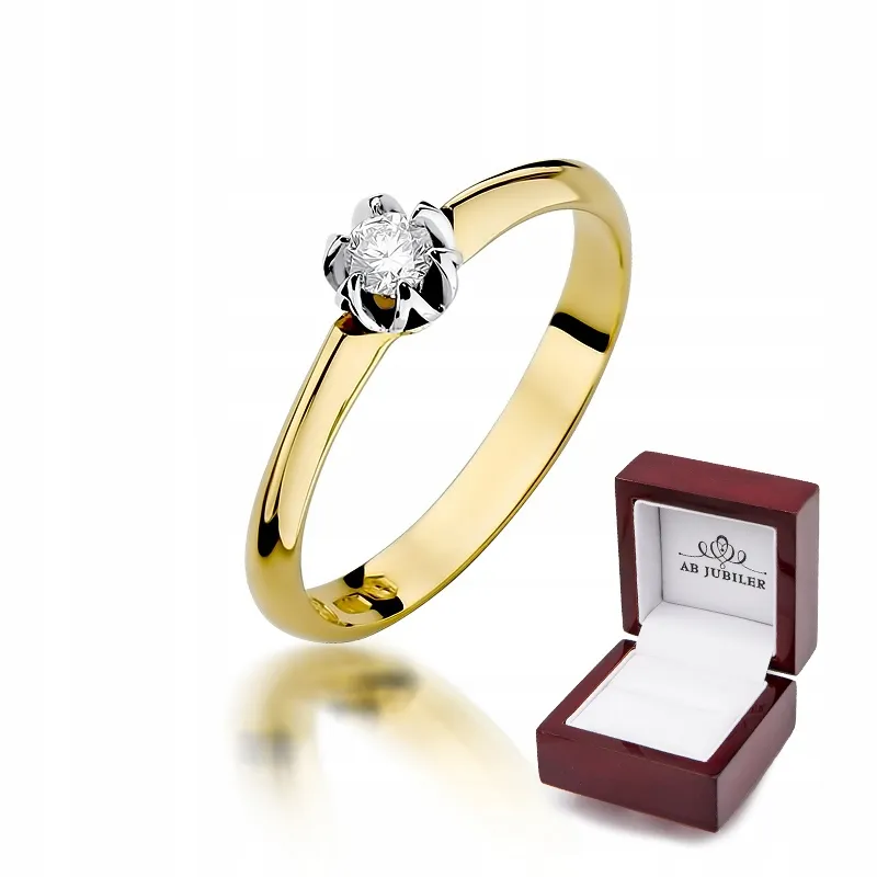 Złoty Pierścionek Zaręczynowy Brylant 0,10ct