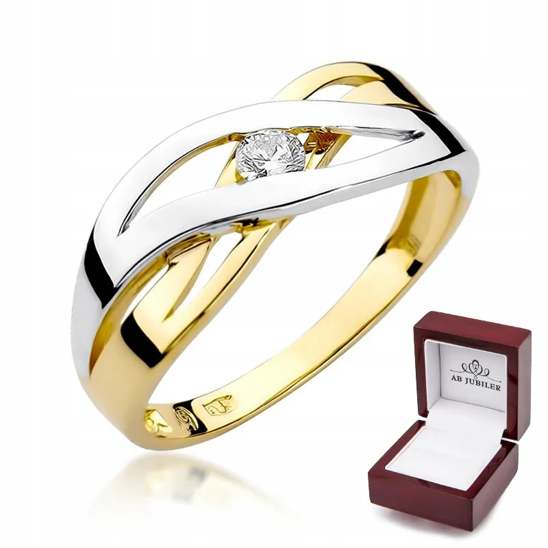 Złoty Pierścionek Zaręczynowy Brylant 0,10ct