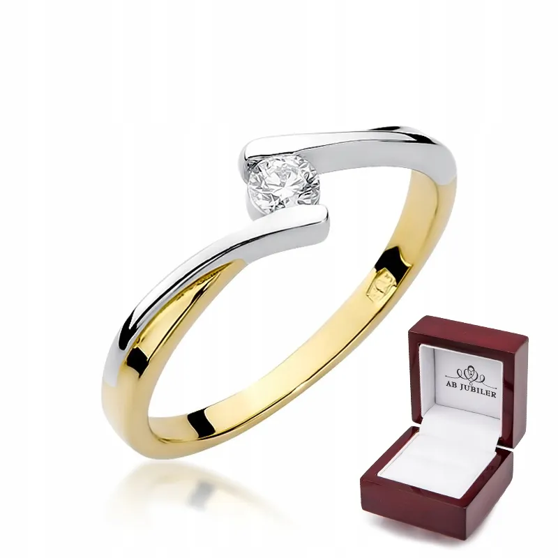 Złoty Pierścionek Zaręczynowy Brylant 0,10ct