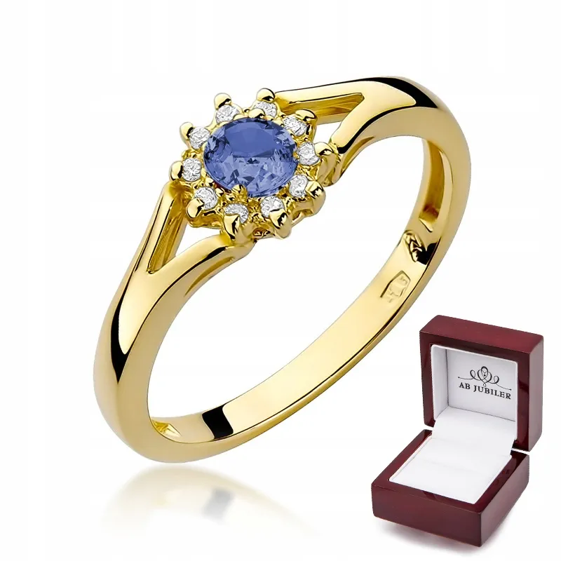 Pierścionek Żółte Złoto Tanzanit Diamenty