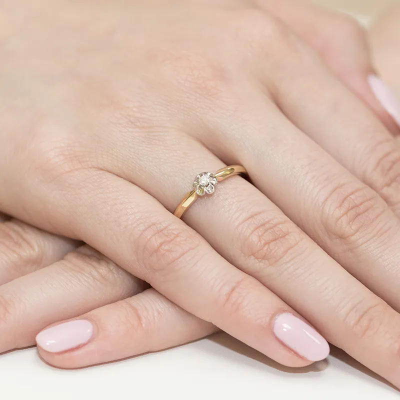 Złoty Pierścionek Zaręczynowy Brylant 0,04ct