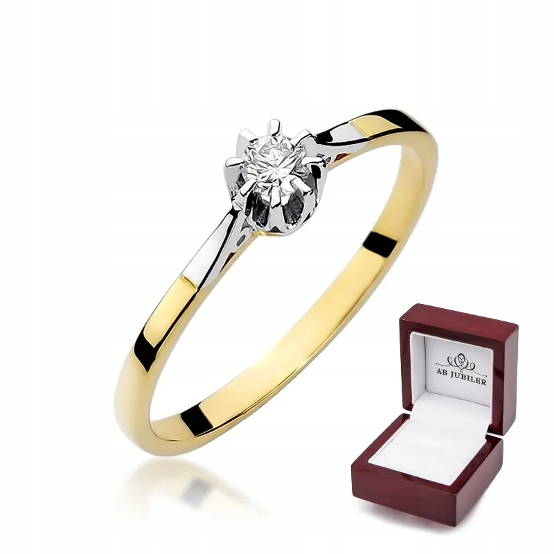 Złoty Pierścionek Zaręczynowy Brylant 0,08ct