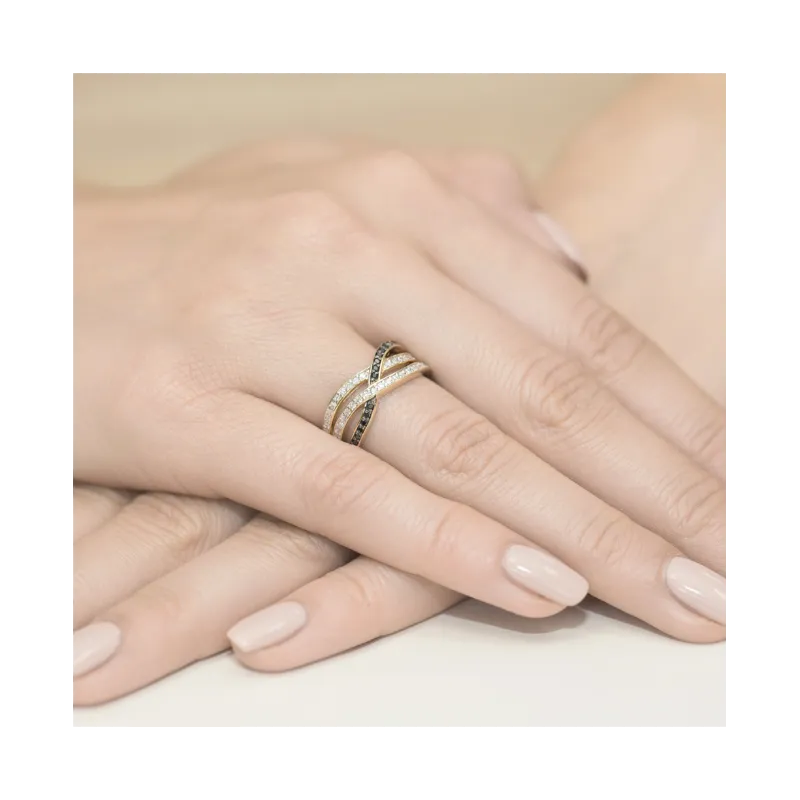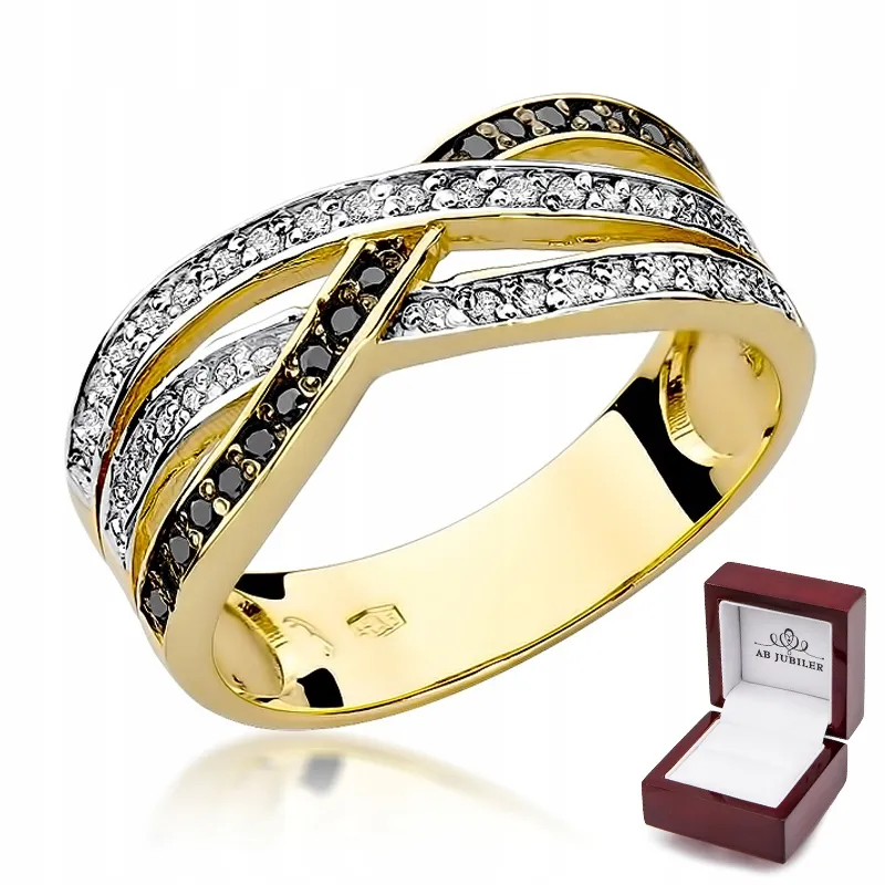 Pierścionek Żółte Złoto Czarny Brylant