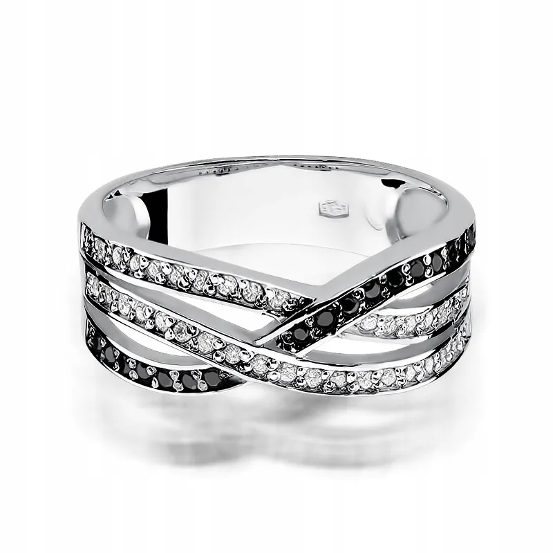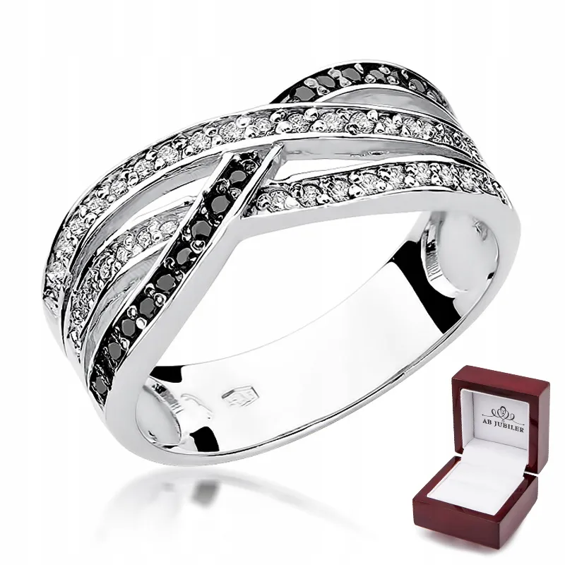 Pierścionek Białe Złoto Czarny Brylanty