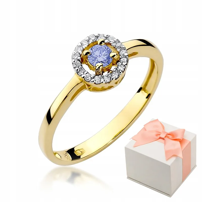 Złoty 585 Pierścionek Tanzanit Brylanty Grawer
