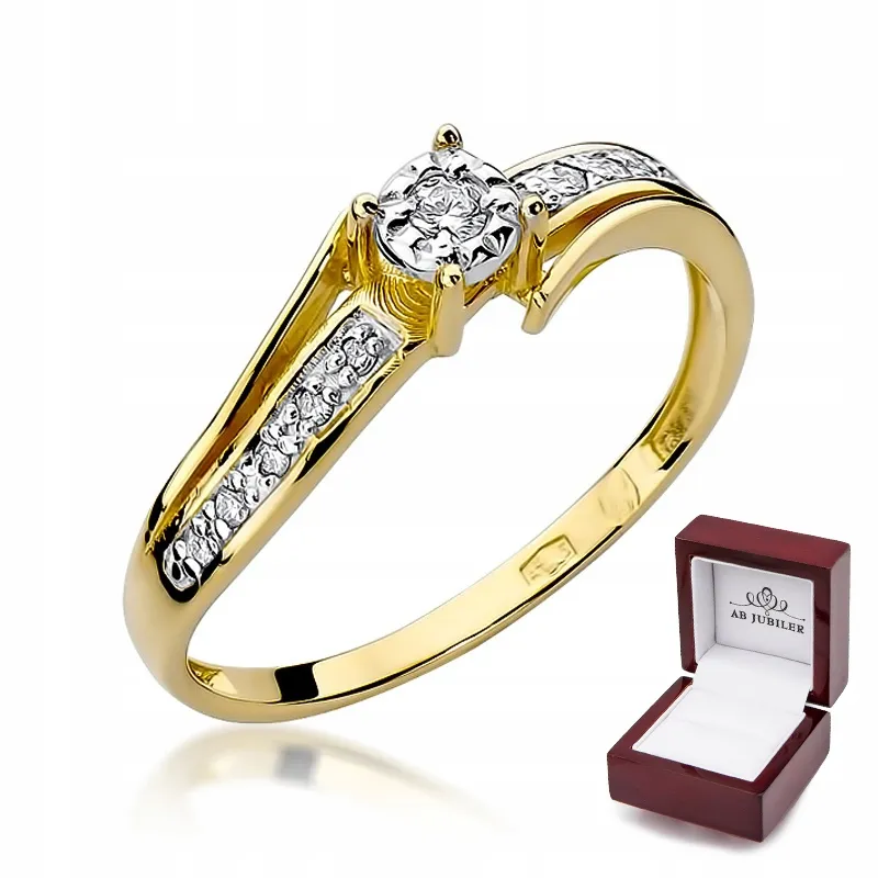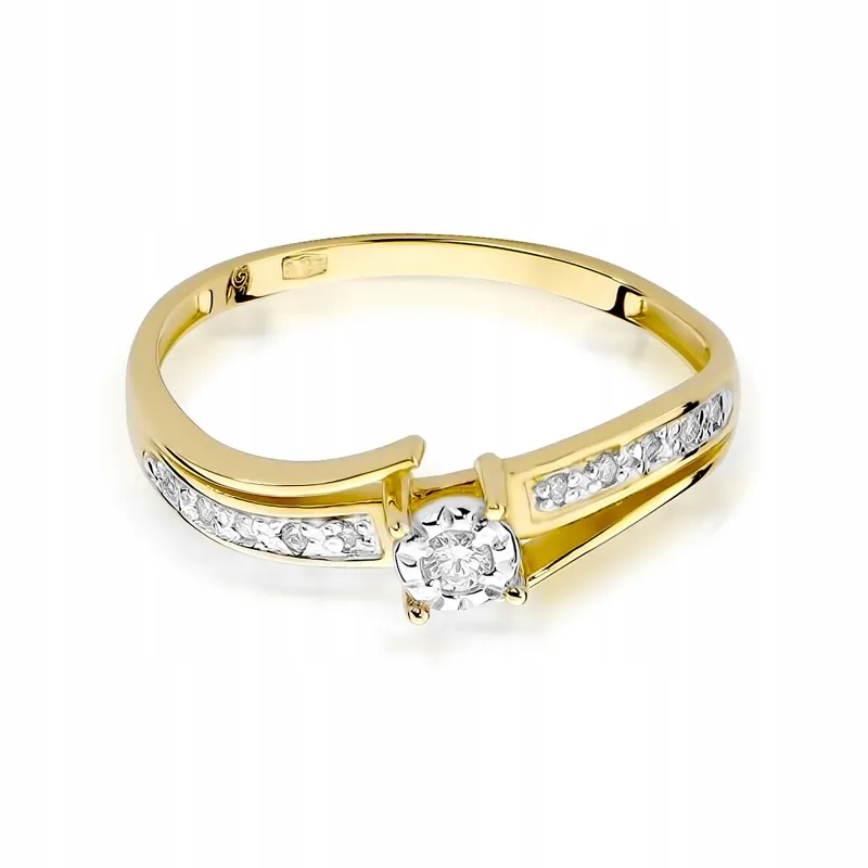 Złoty Pierścionek Zaręczynowy Brylant 0,10ct