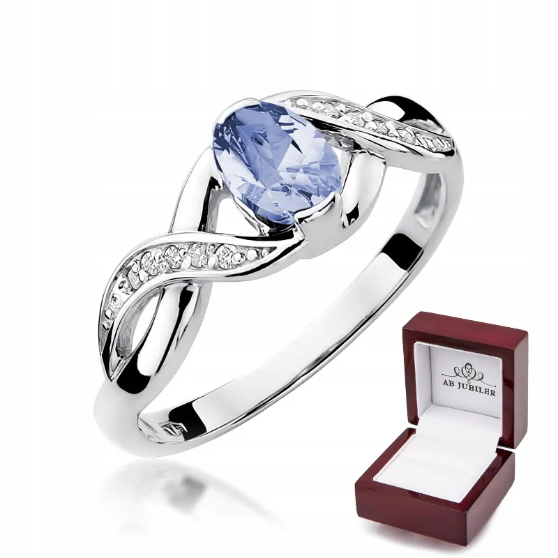 Pierścionek 585 Zaręczynowy Białe Złoto Tanzanit