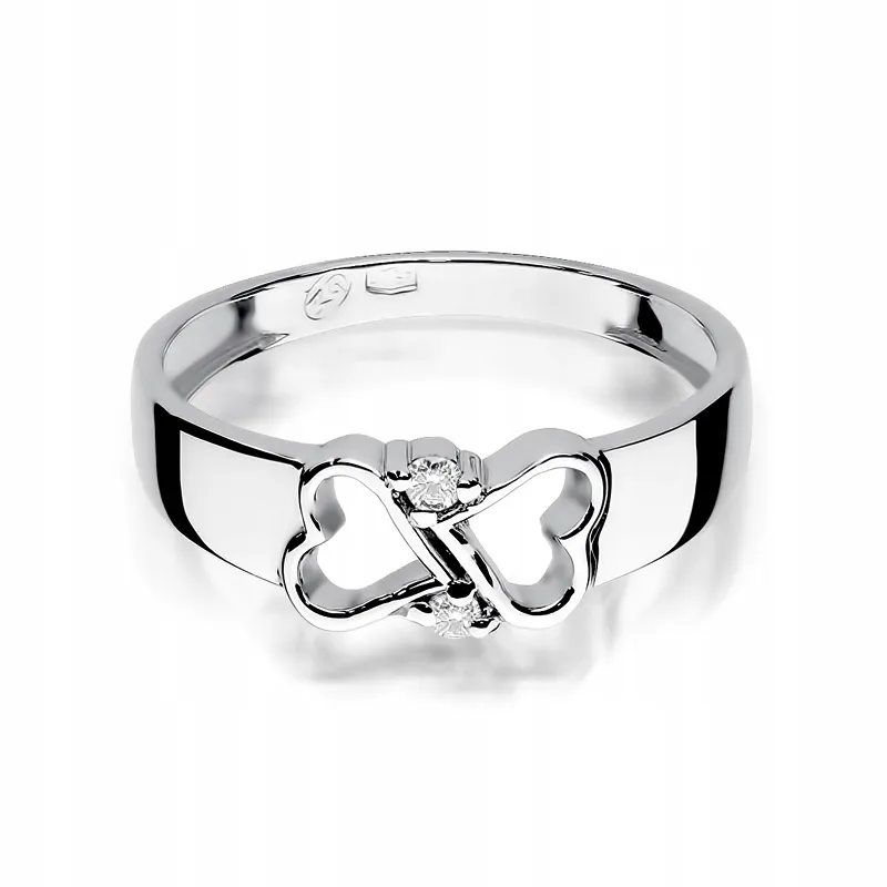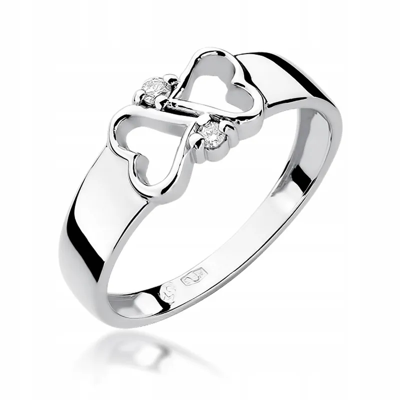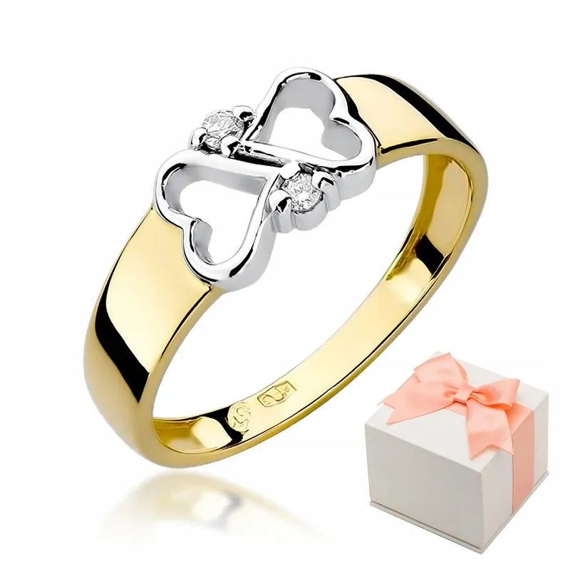 Złoty Pierścionek 585 Zaręczynowy Brylanty Dwa Serca