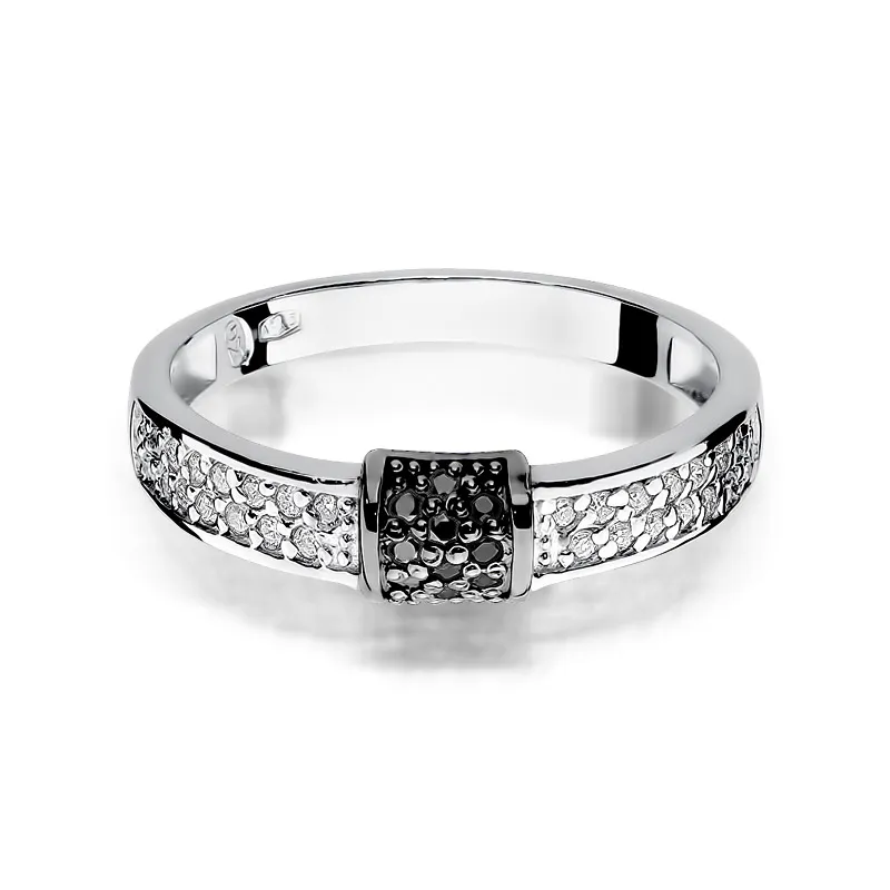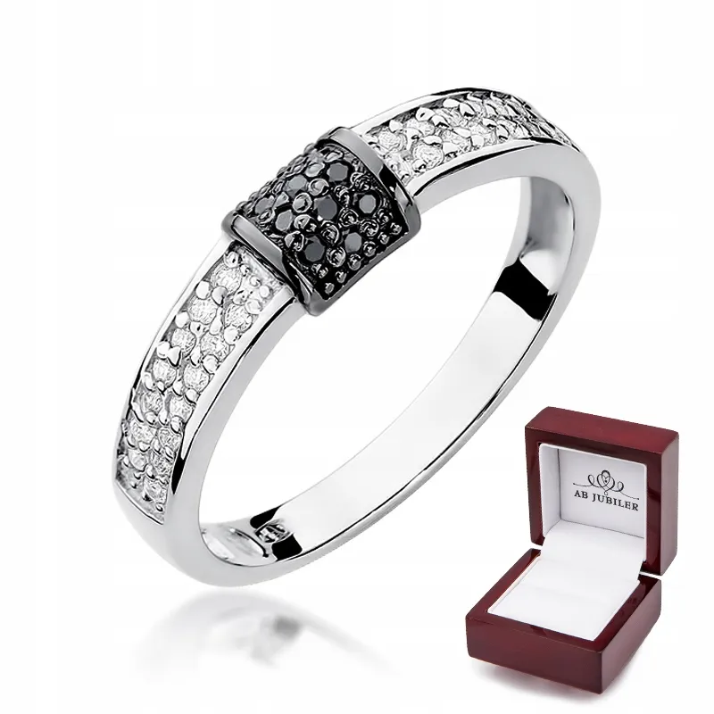 Pierścionek Białe Złoto Białe i Czarne Brylanty