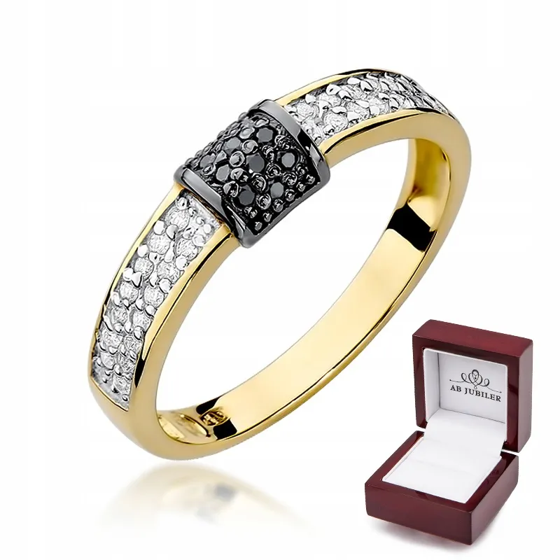 Pierścionek Żółte Złoto Białe i Czarne Brylanty
