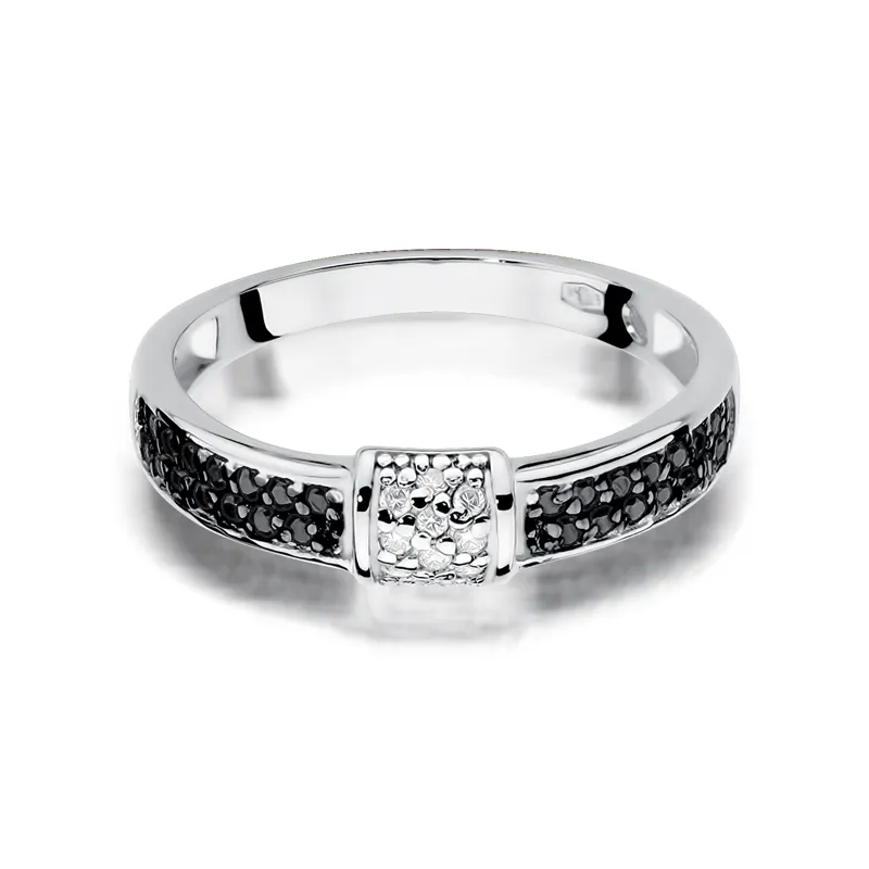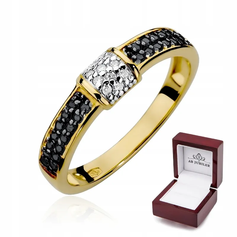 Pierścionek Żółte Złoto Czarne i Białe Brylanty