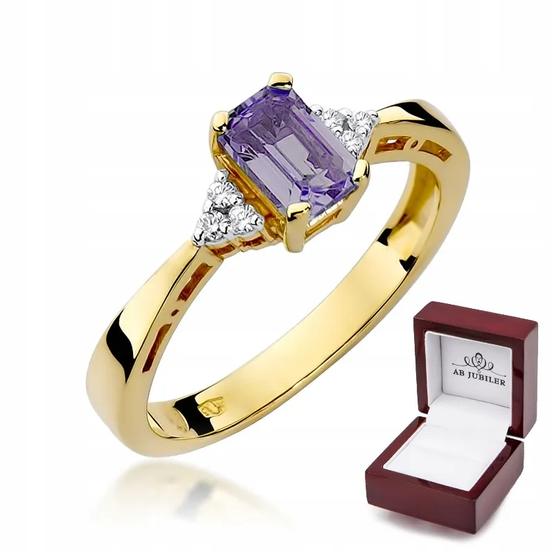 Pierścionek Żółte Złoto Ametyst Brylanty