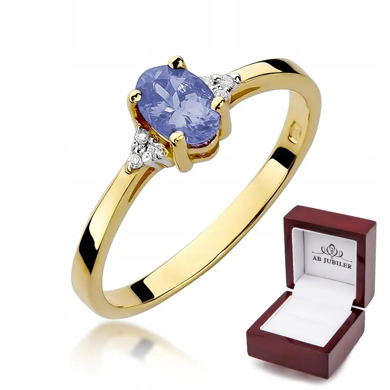 Złoty Pierścionek Tanzanit Diamenty Próba 585