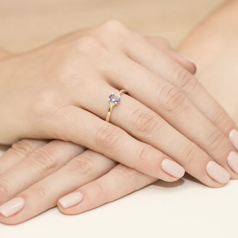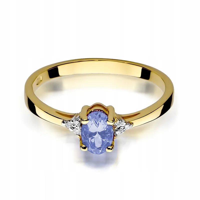 Pierścionek Żółte Złoto Tanzanit Diamenty