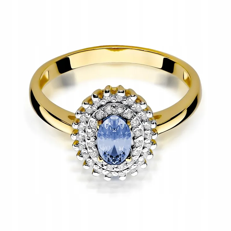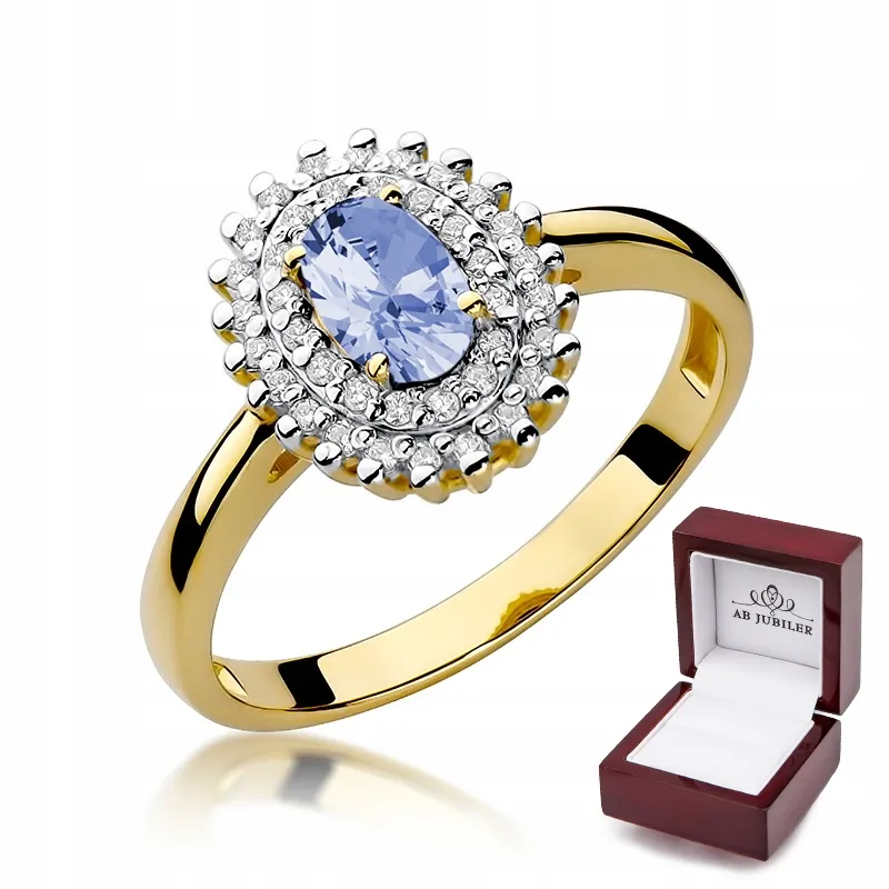 Pierścionek Żółte Złoto Tanzanit Brylanty