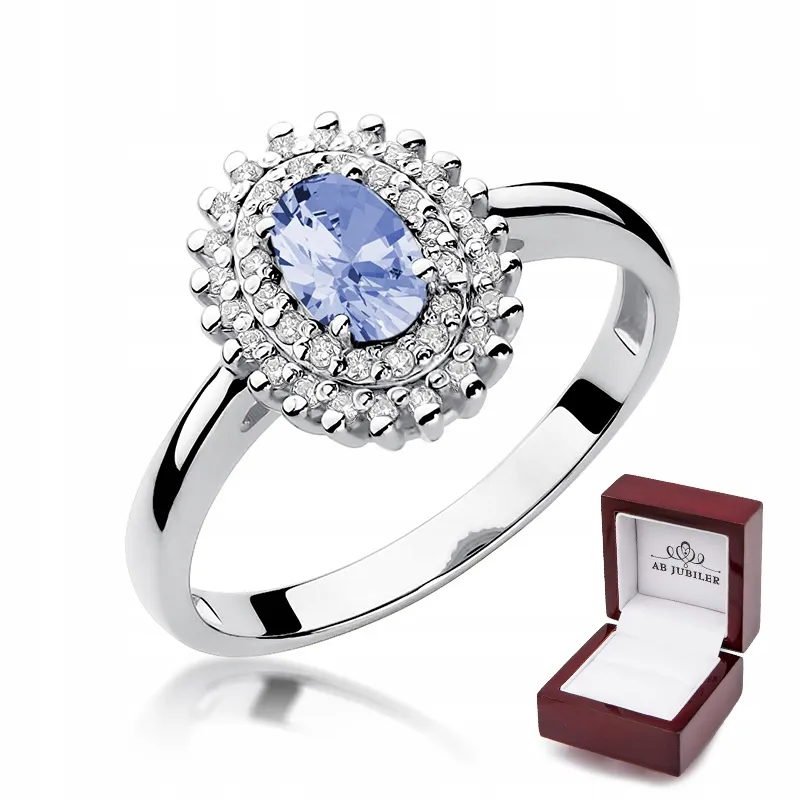 Pierścionek Białe Złoto Tanzanit Brylanty