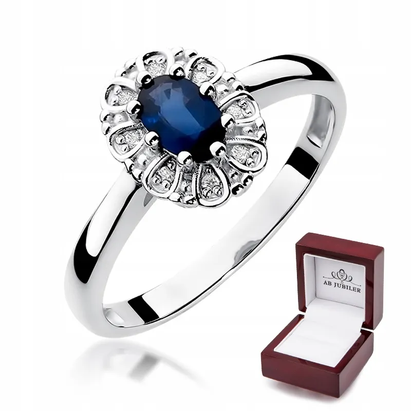 Pierścionek Białe Złoto Szafir Diamenty