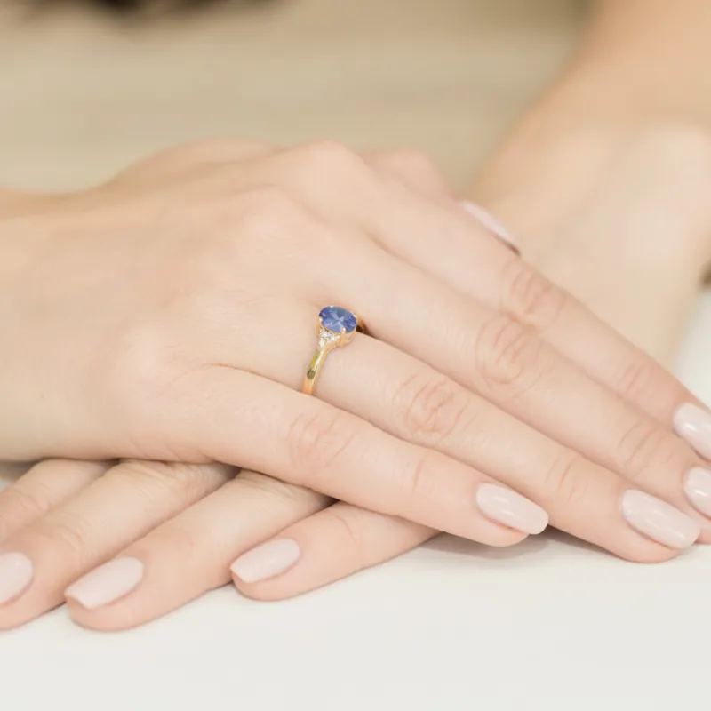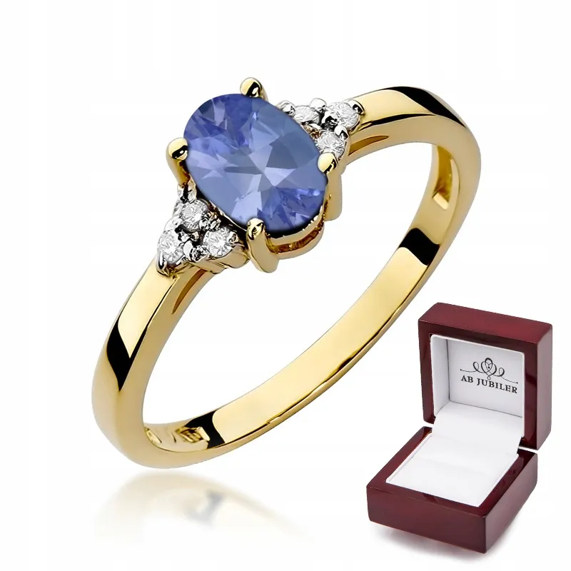 Pierścionek Żółte Złoto Tanzanit Brylanty