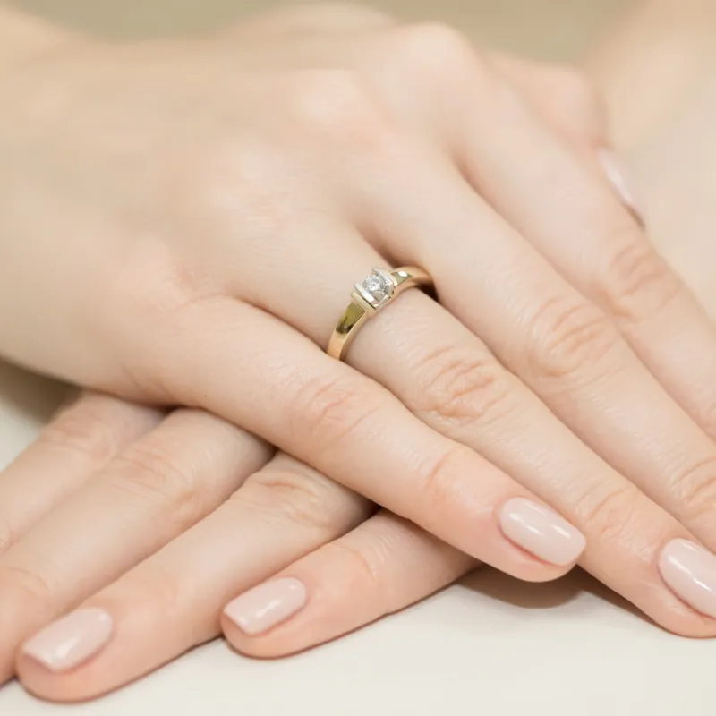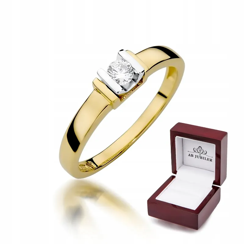 Złoty Pierścionek Zaręczynowy Brylant 0,10ct