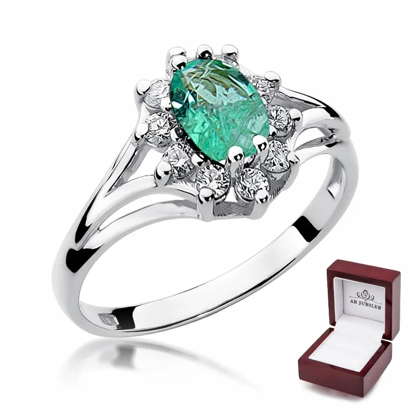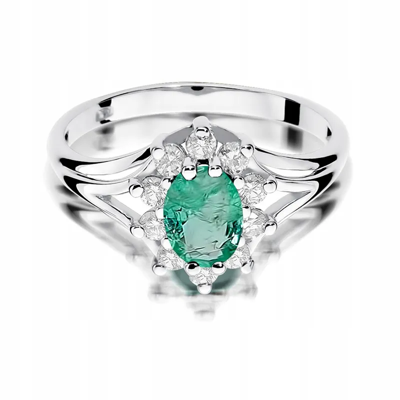 Pierścionek 585 Białe Złoto Szmaragd Brylant