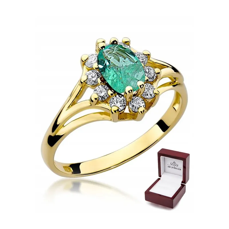 Pierścionek 585 Szmaragd Brylant na Prezent Grawer