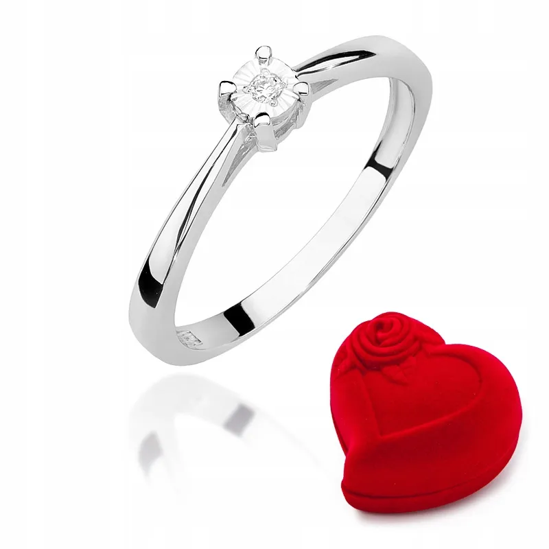 Pierścionek 14K Zaręczynowy Brylant Białe Złoto