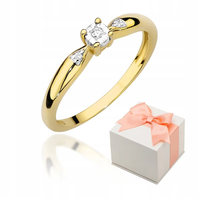 Złoty 585 Pierścionek Zaręczynowy Brylant 0,03ct