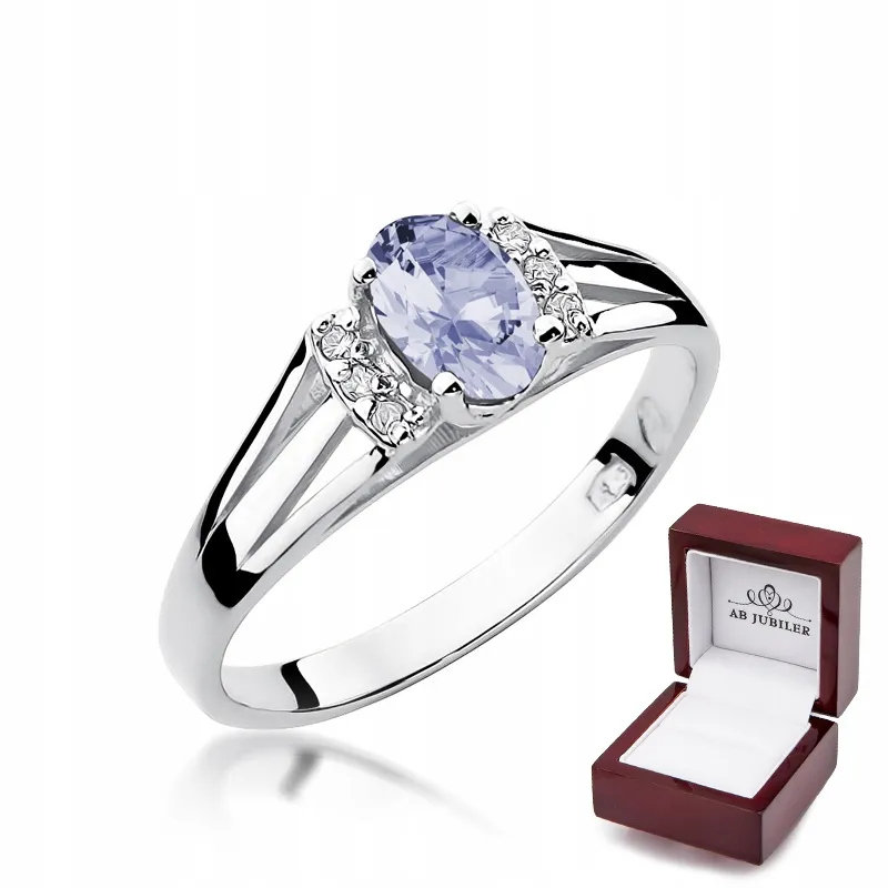 Pierścionek Białe Złoto Tanzanit Brylanty