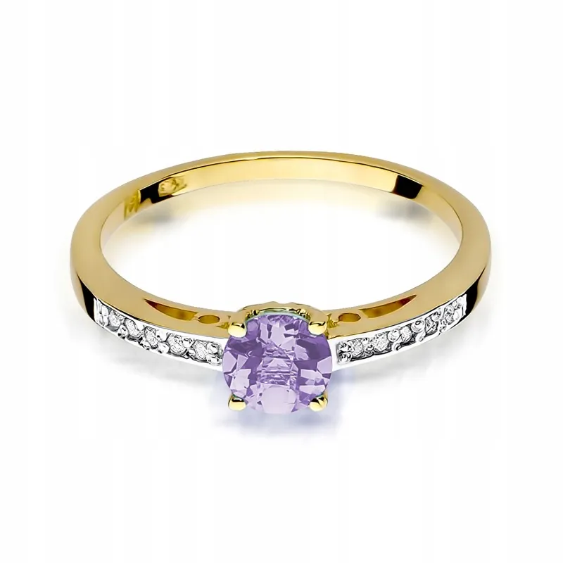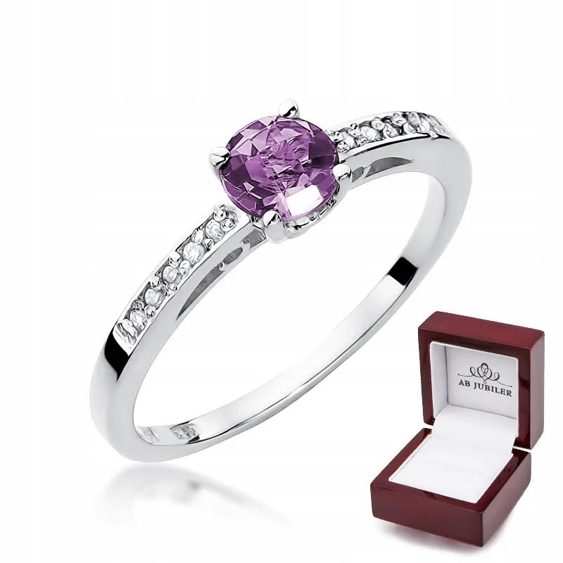 Pierścionek Zaręczynowy Ametyst Brylanty Białe Złoto
