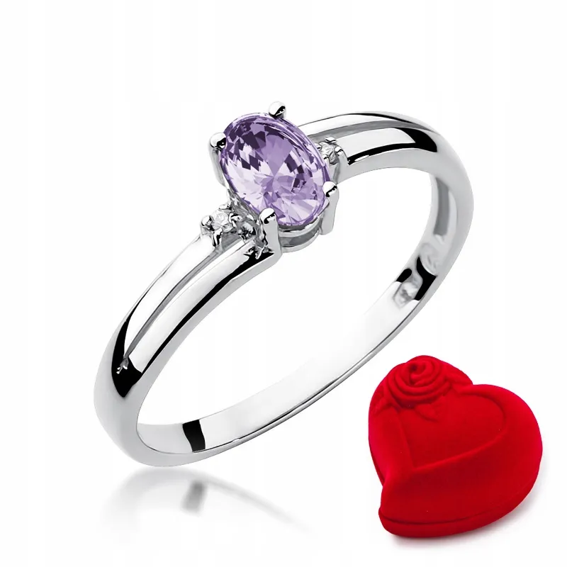 Pierścionek 585 Zaręczynowy Tanzanit Brylanty Białe Złoto