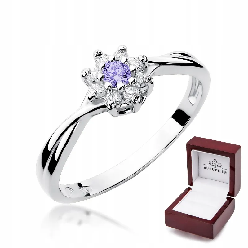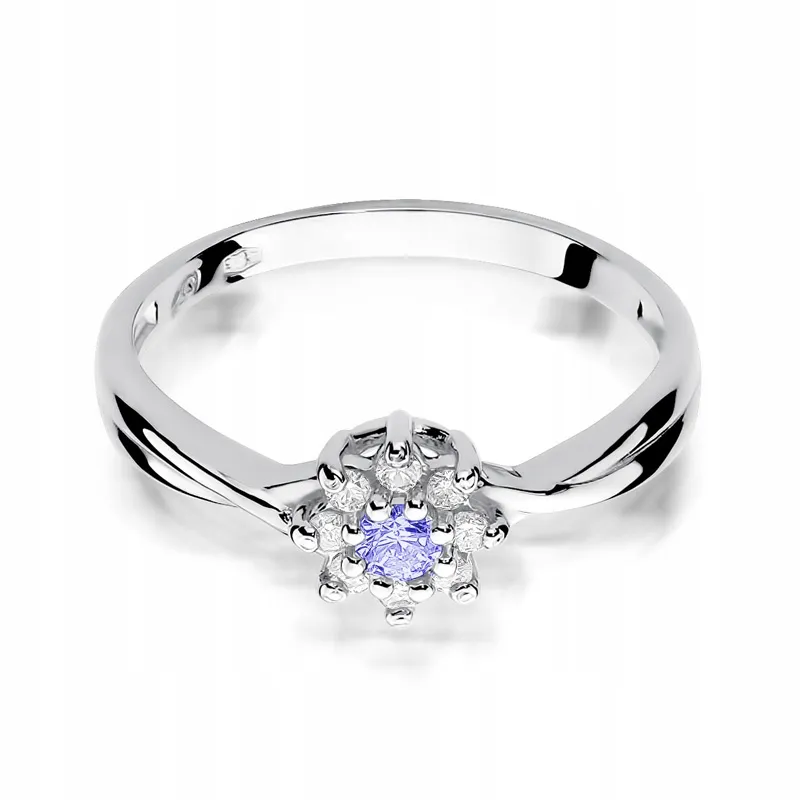 Pierścionek Białe Złoto Tanzanit Brylanty