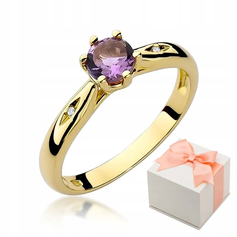 Złoty Pierścionek Zaręczynowy Ametyst Diamenty