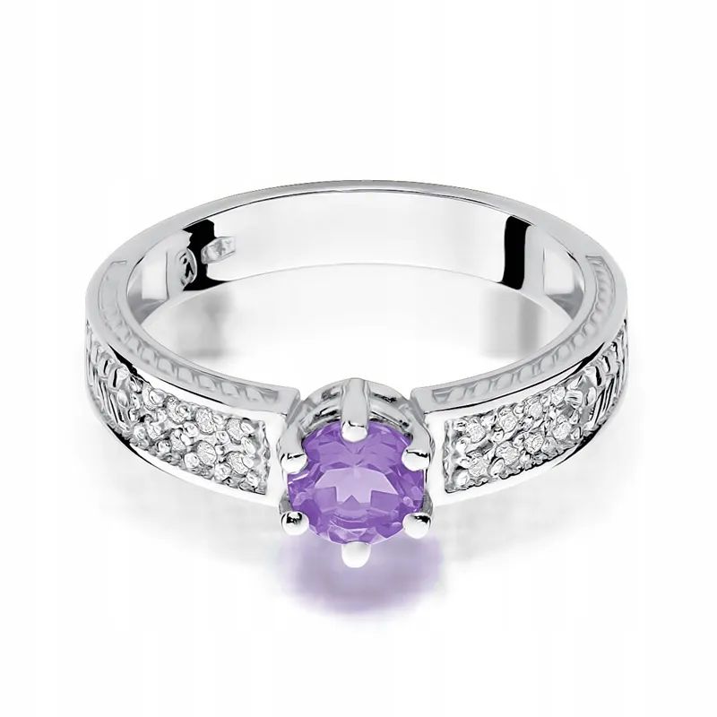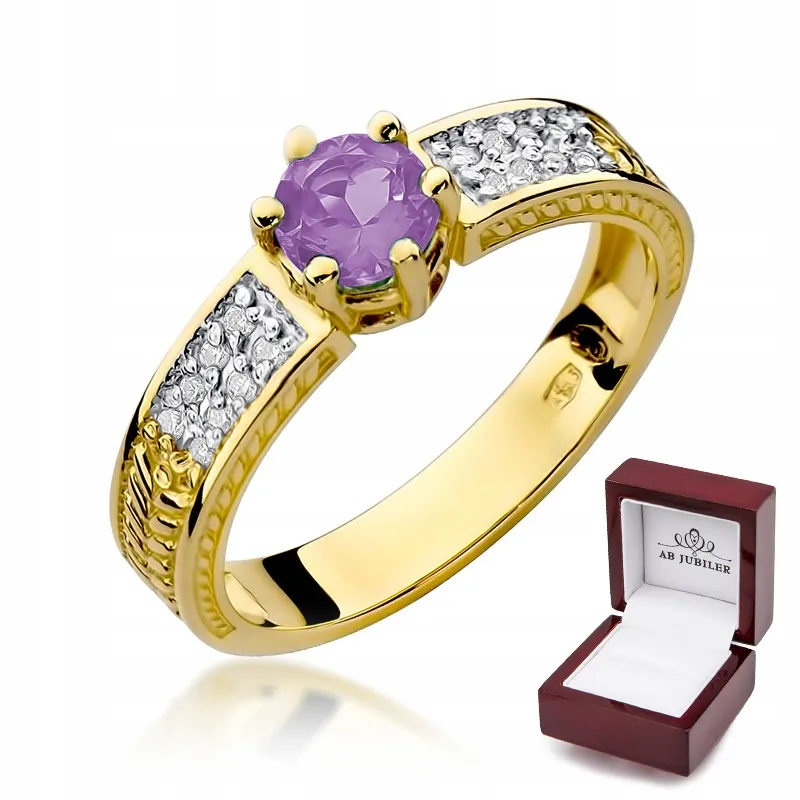 Pierścionek Żółte Złoto Ametyst Diamenty