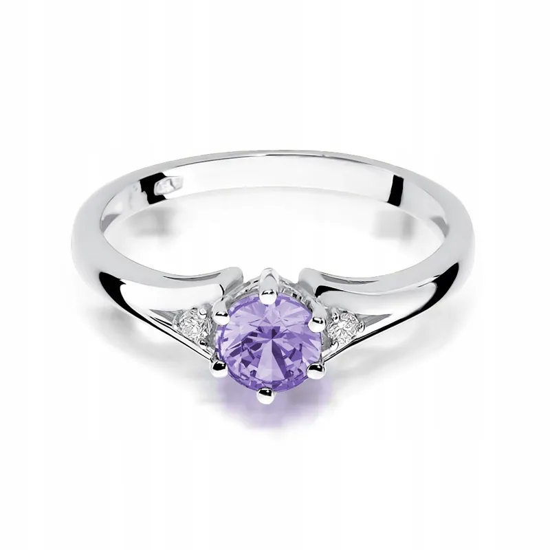 Pierścionek 585 Zaręczynowy Ametyst Białe Złoto