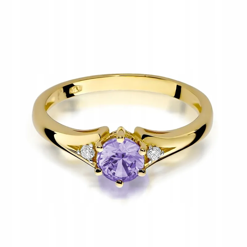 Pierścionek 14K Zaręczynowy Ametyst i Brylanty