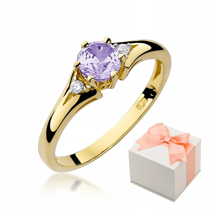 Pierścionek Zaręczynowy Ametyst Brylanty