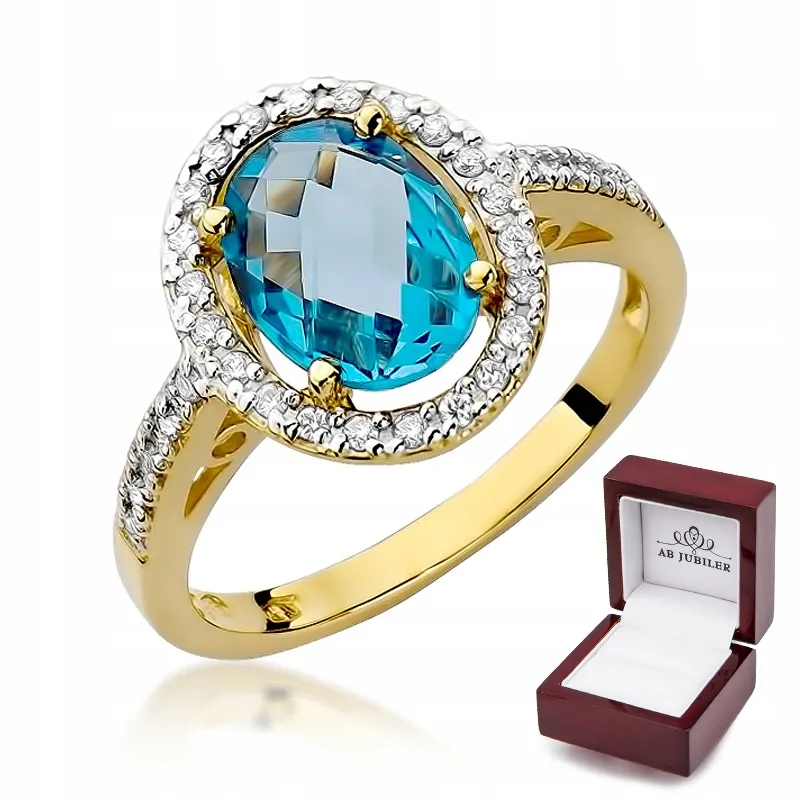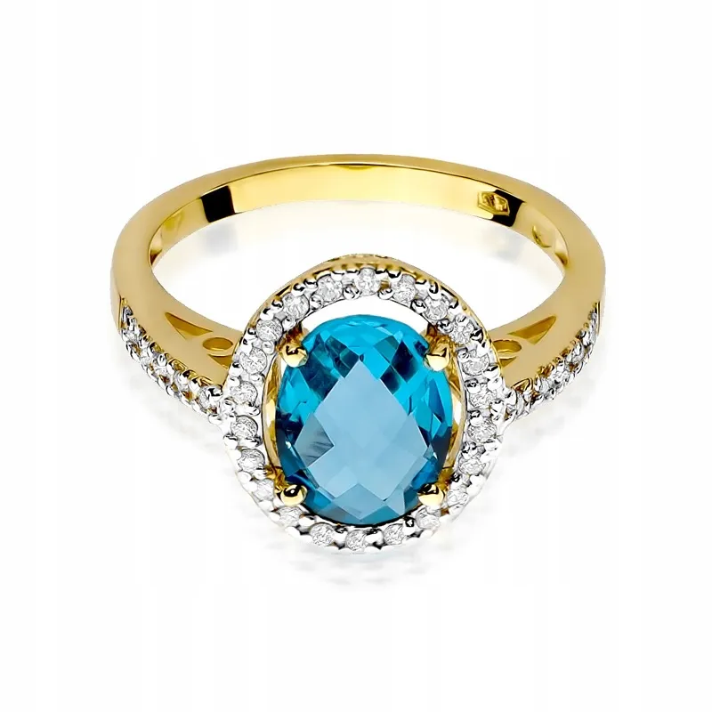Pierścionek Żółte Złoto Topaz i Brylanty