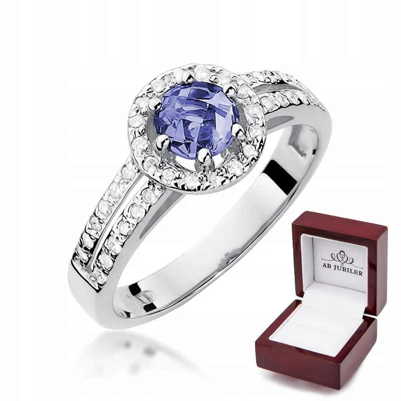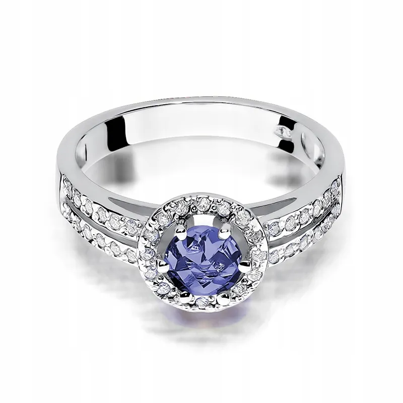 Pierścionek Białe Złoto Tanzanit Diamenty