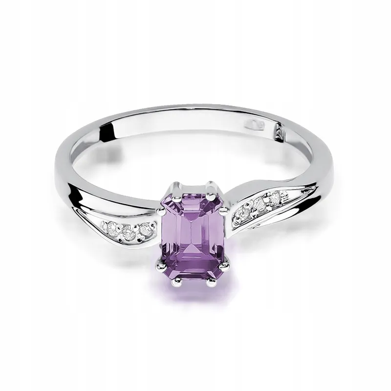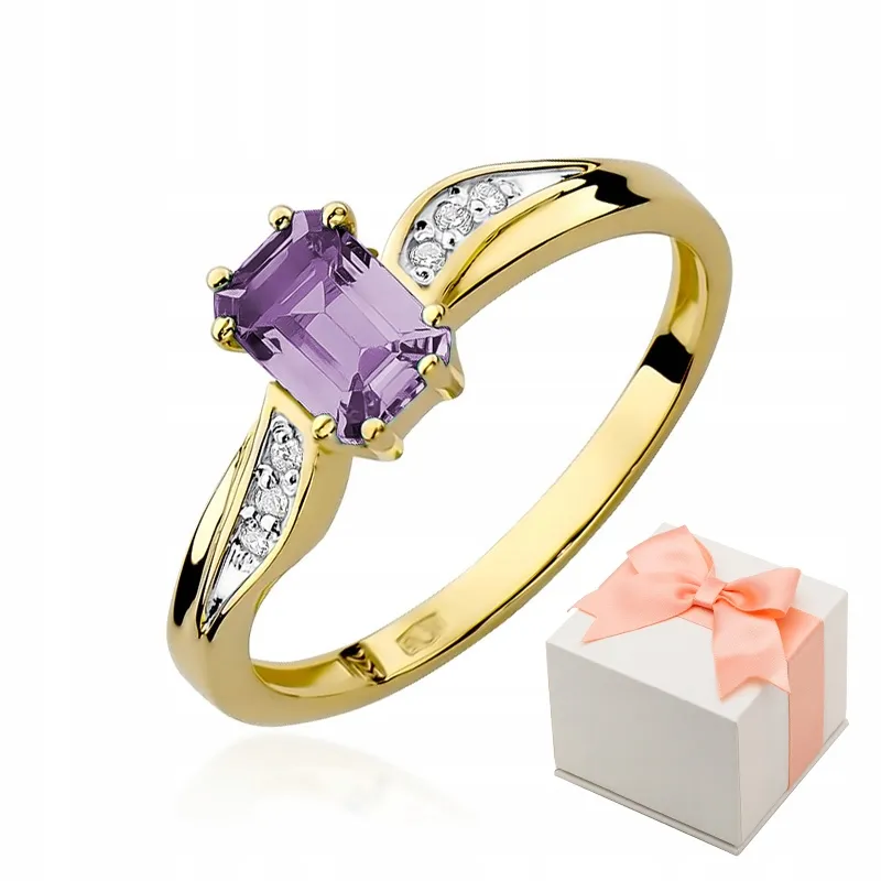 Pierścionek Żółte Złoto Ametyst Diamenty