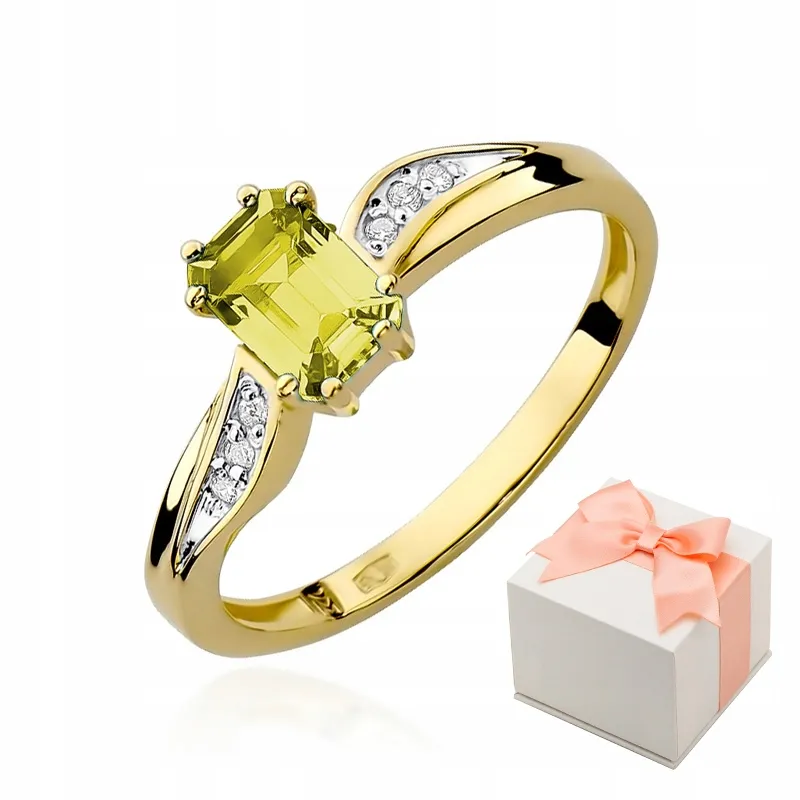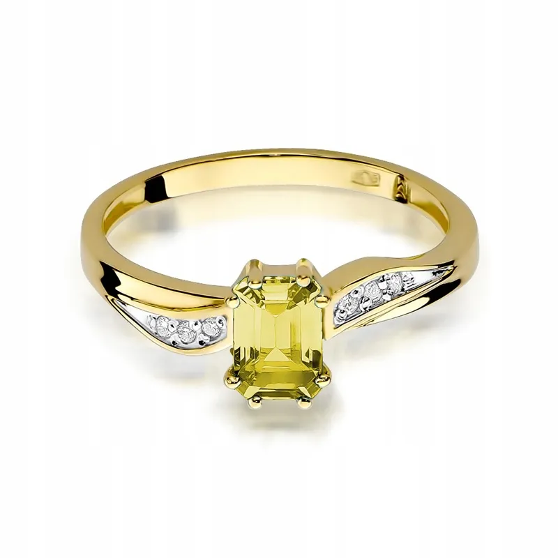 Pierścionek Żółte Złoto Cytryn Diamenty