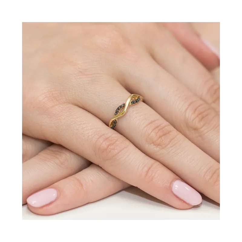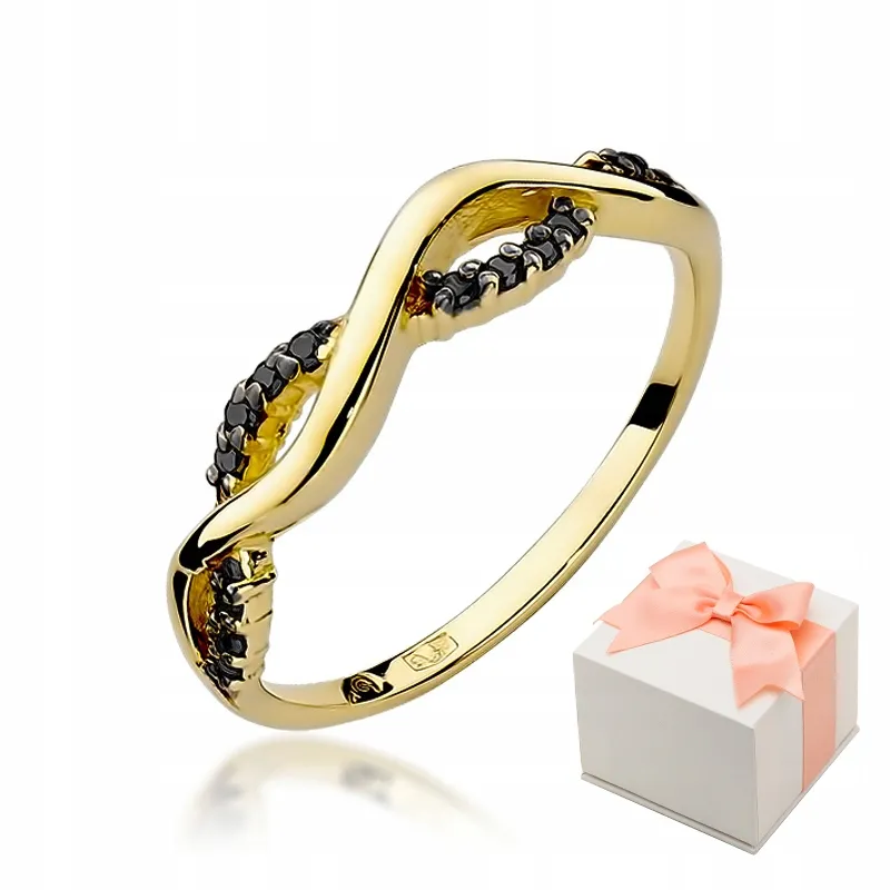 Złoty 585 Pierścionek z Czarnymi Brylantami