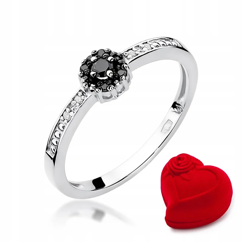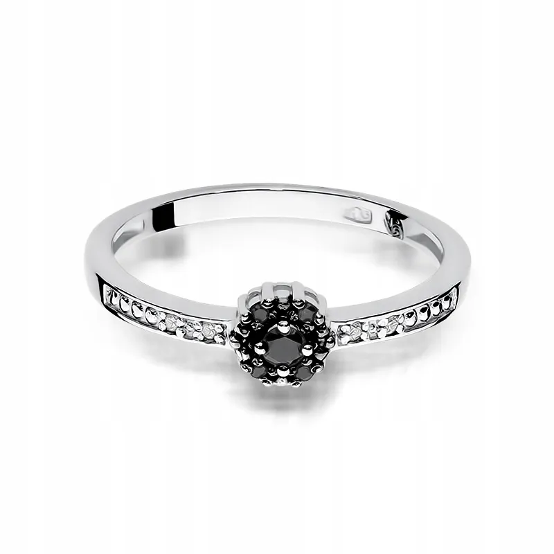 • Kamień: Kamień centralny: brylant czarny 0,04 ct, Kamienie boczne: brylanty czarne 0,02 ct, brylanty 0,03 ct H/Si