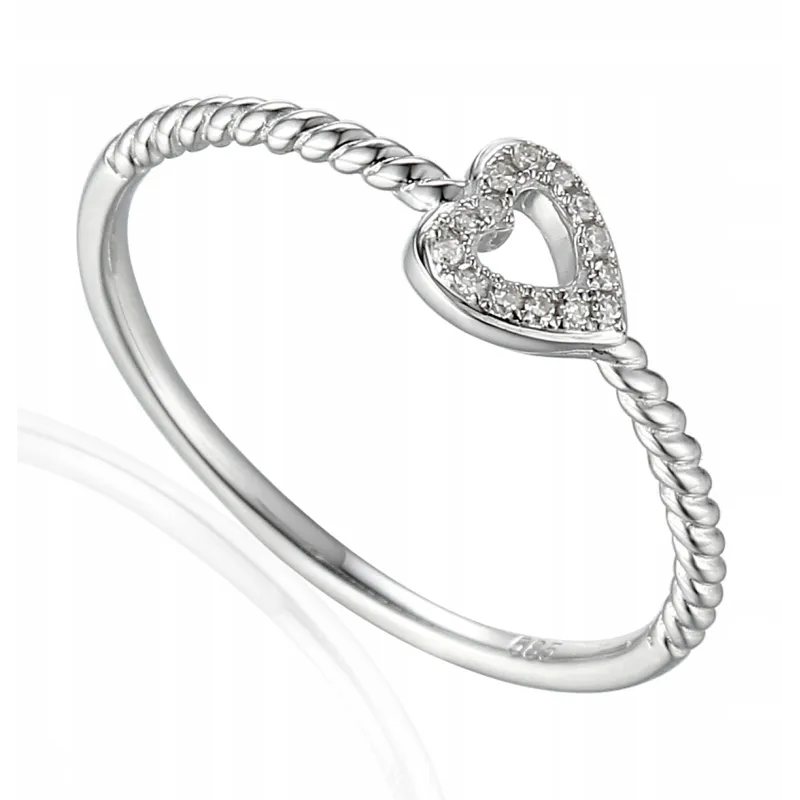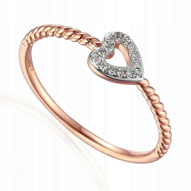 ZŁOTY 585 PIERŚCIONEK SERCE DIAMENTY PREZENT