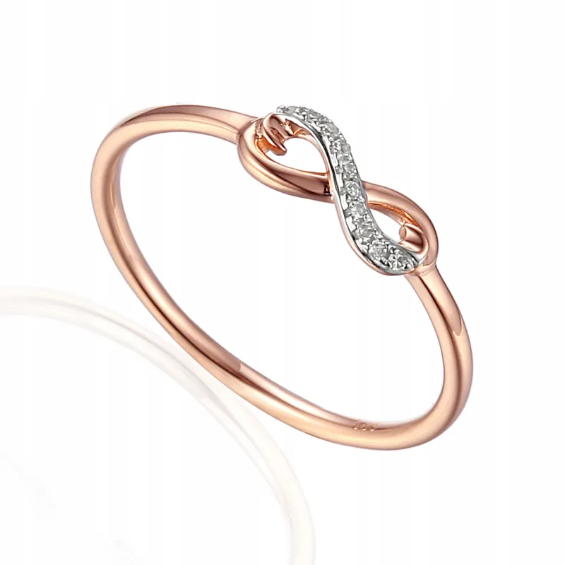 RÓŻOWY PIERŚCIONEK 585 NIESKOŃCZONOŚĆ DIAMENTY